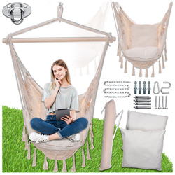 Beżowy fotel hamak brazylijski huśtawka + poduszki + hak