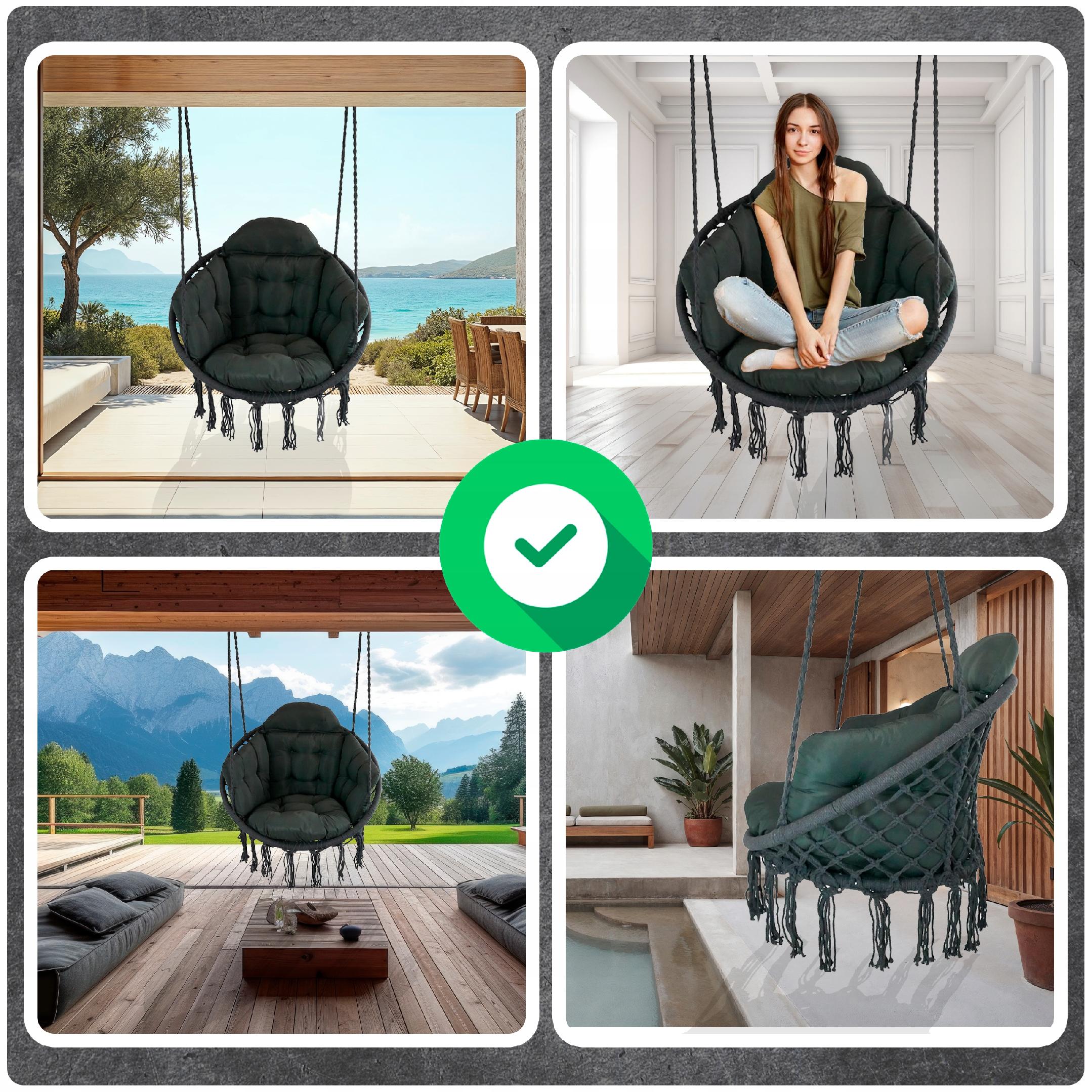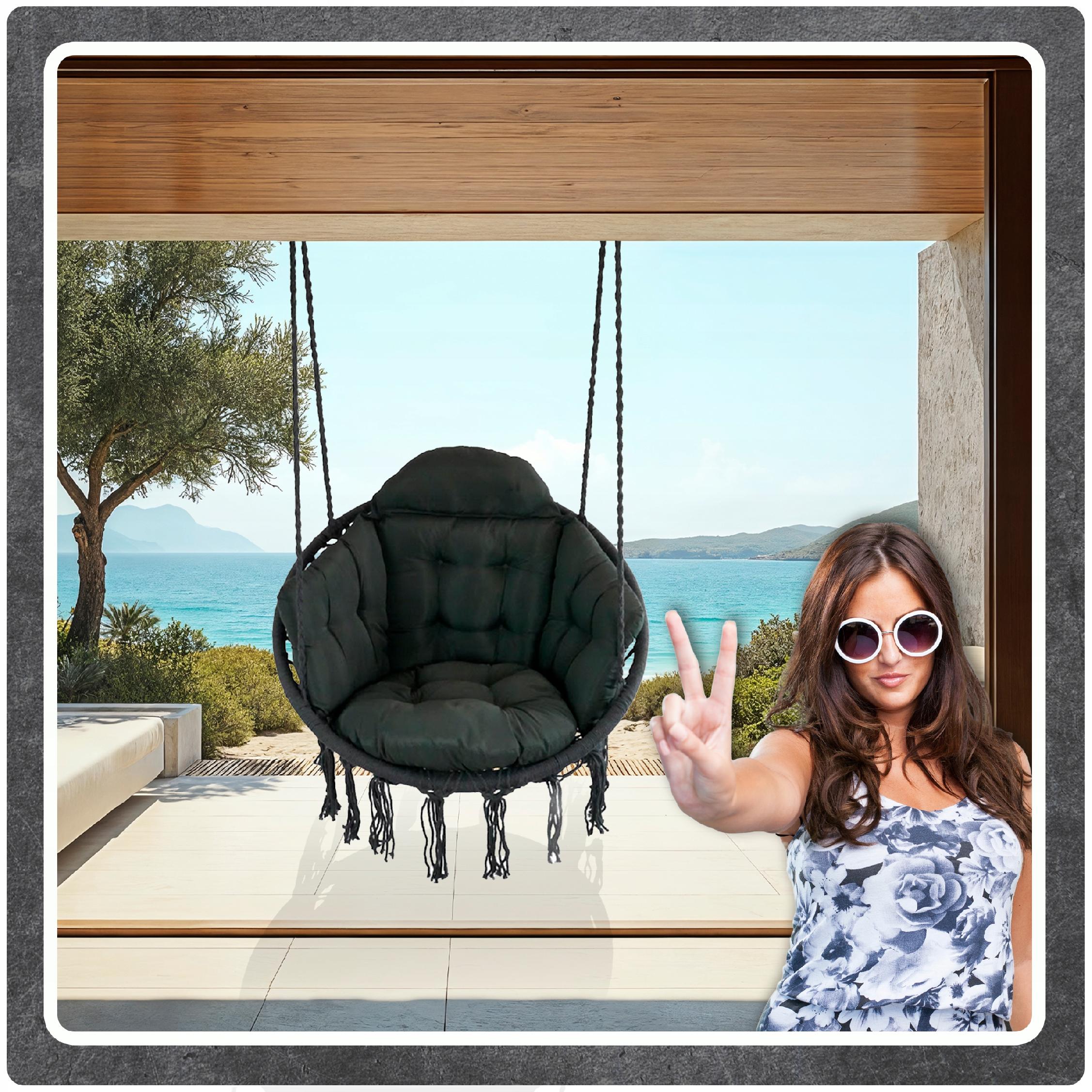 Opinie o Ciemno Szare Bocianie gniazdo huśtawka + Poduszka XXL Zestaw Montażowy