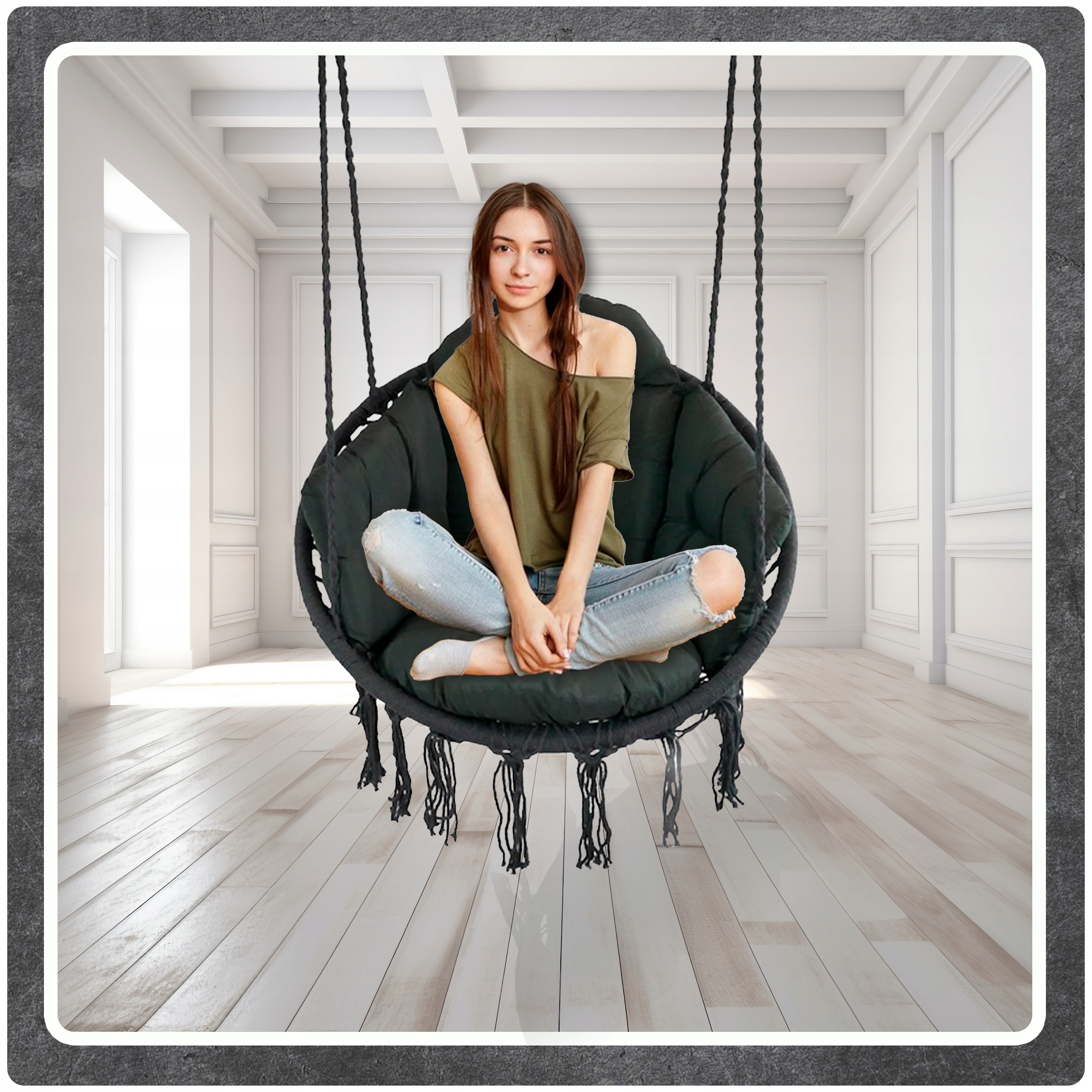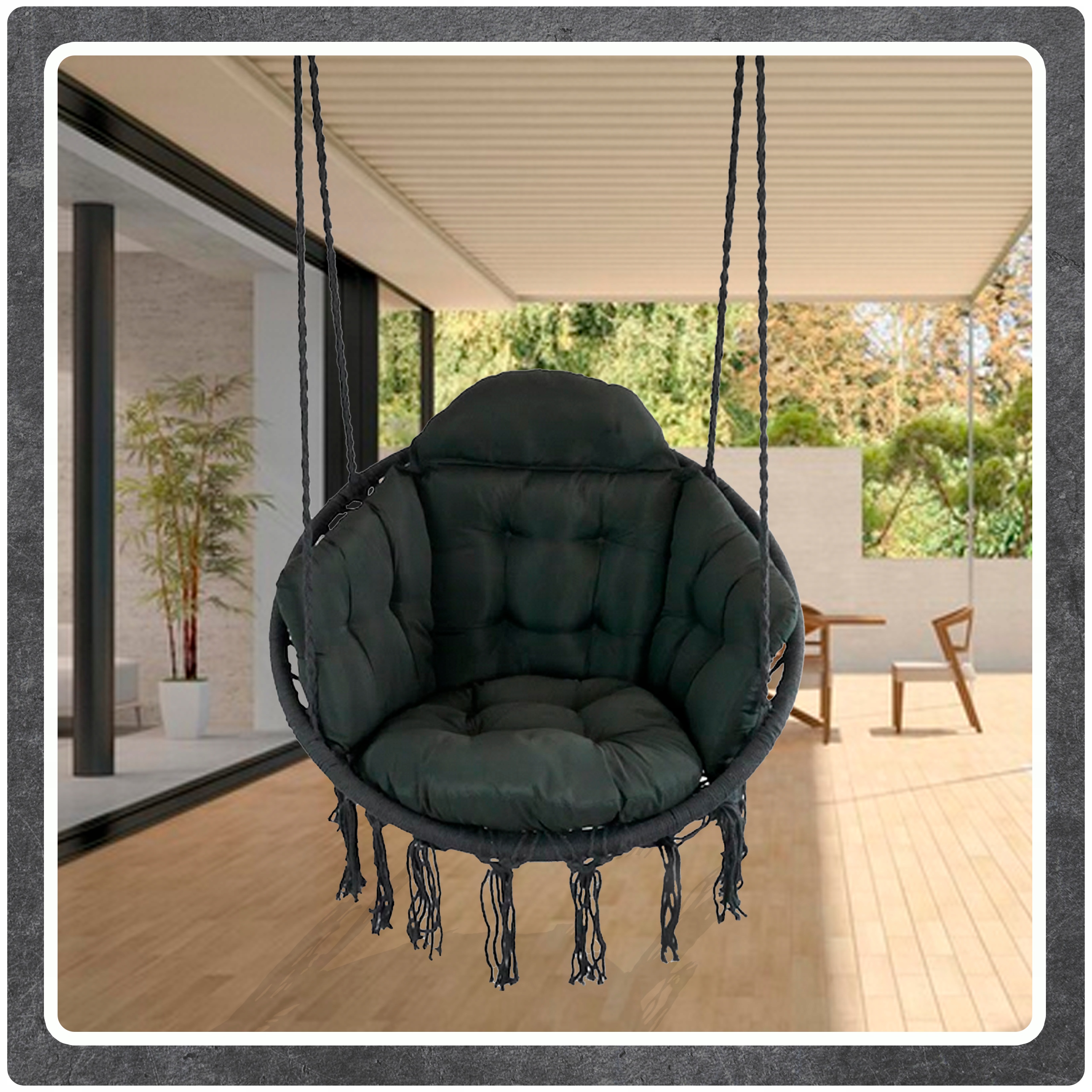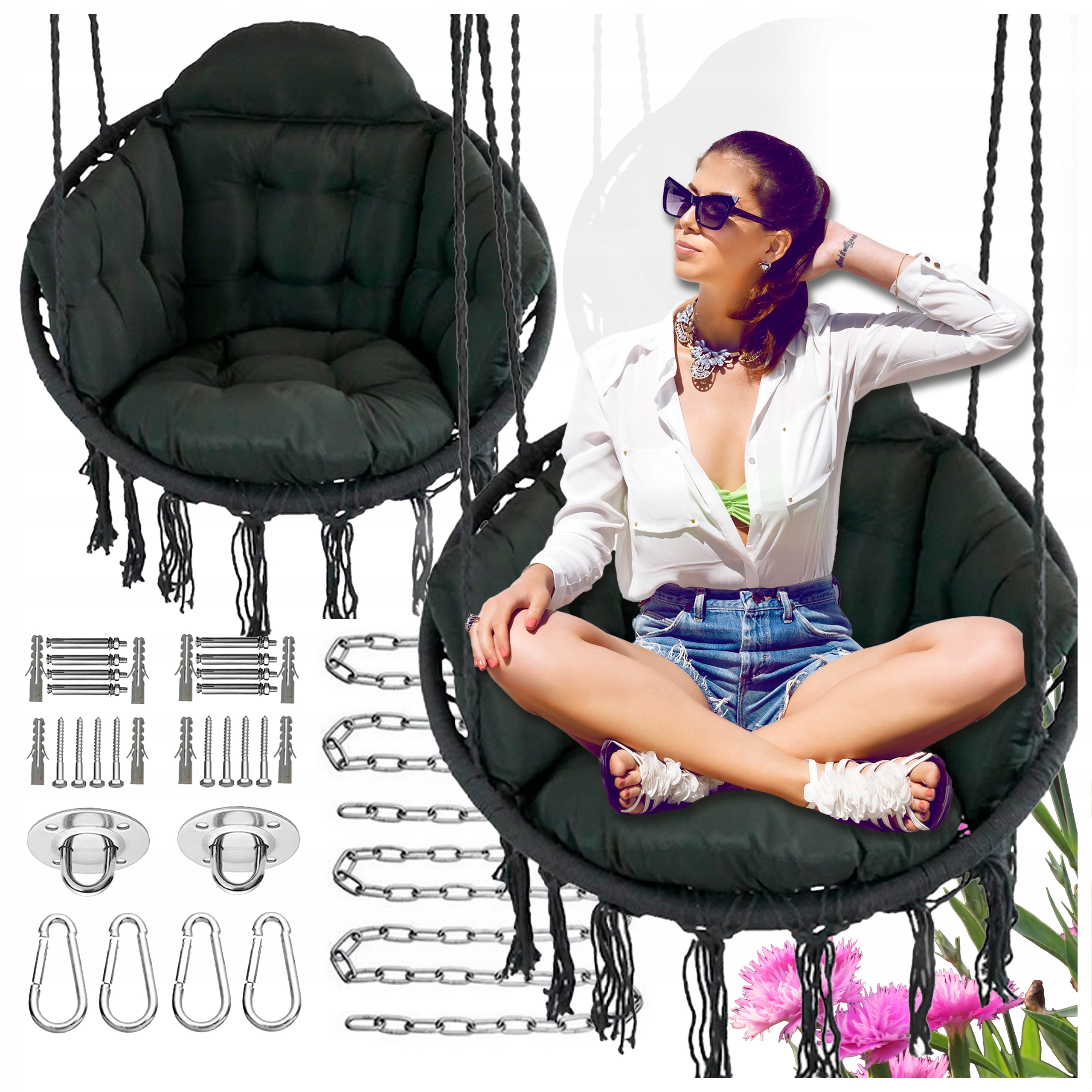 Ciemno Szare Bocianie gniazdo huśtawka + Poduszka XXL Zestaw Montażowy