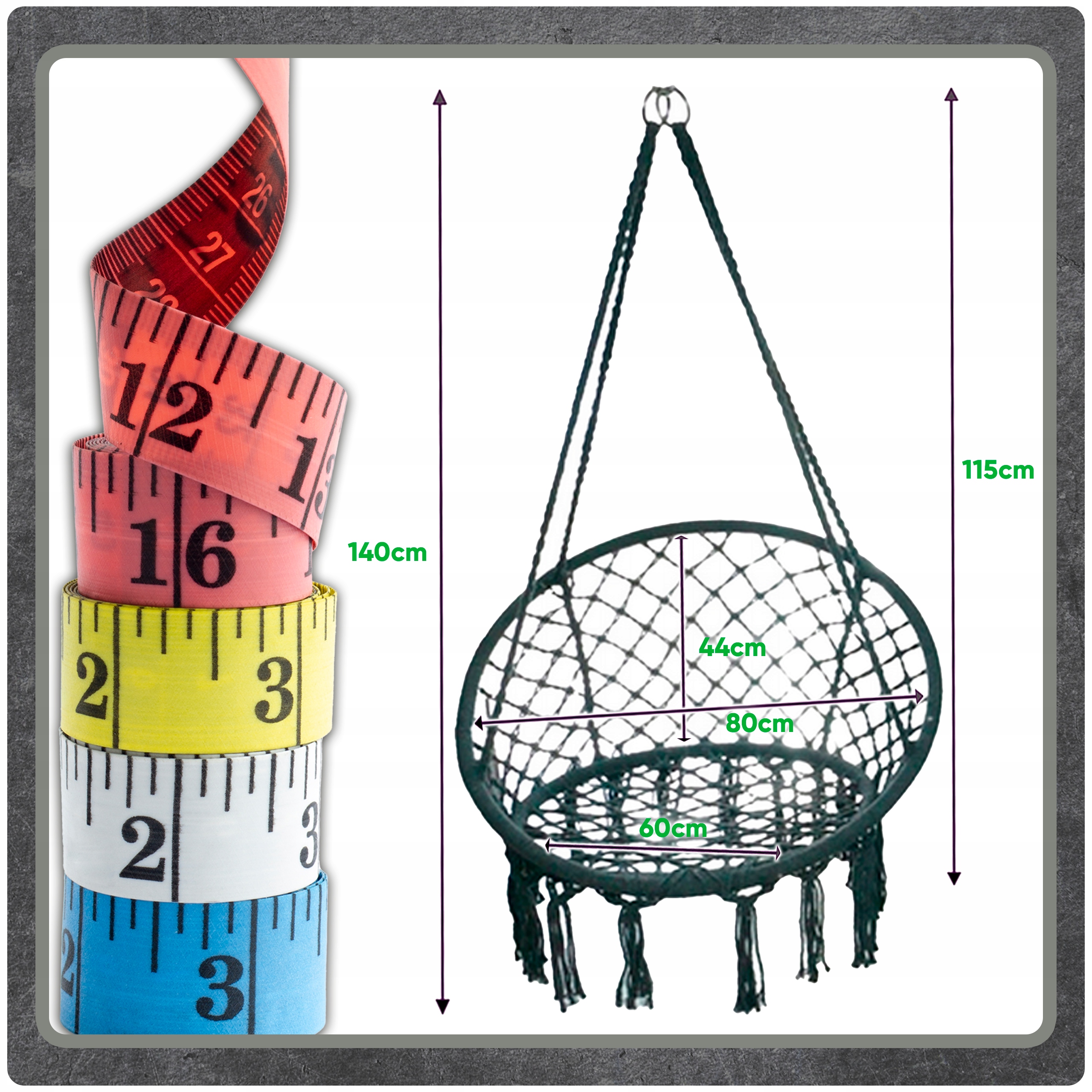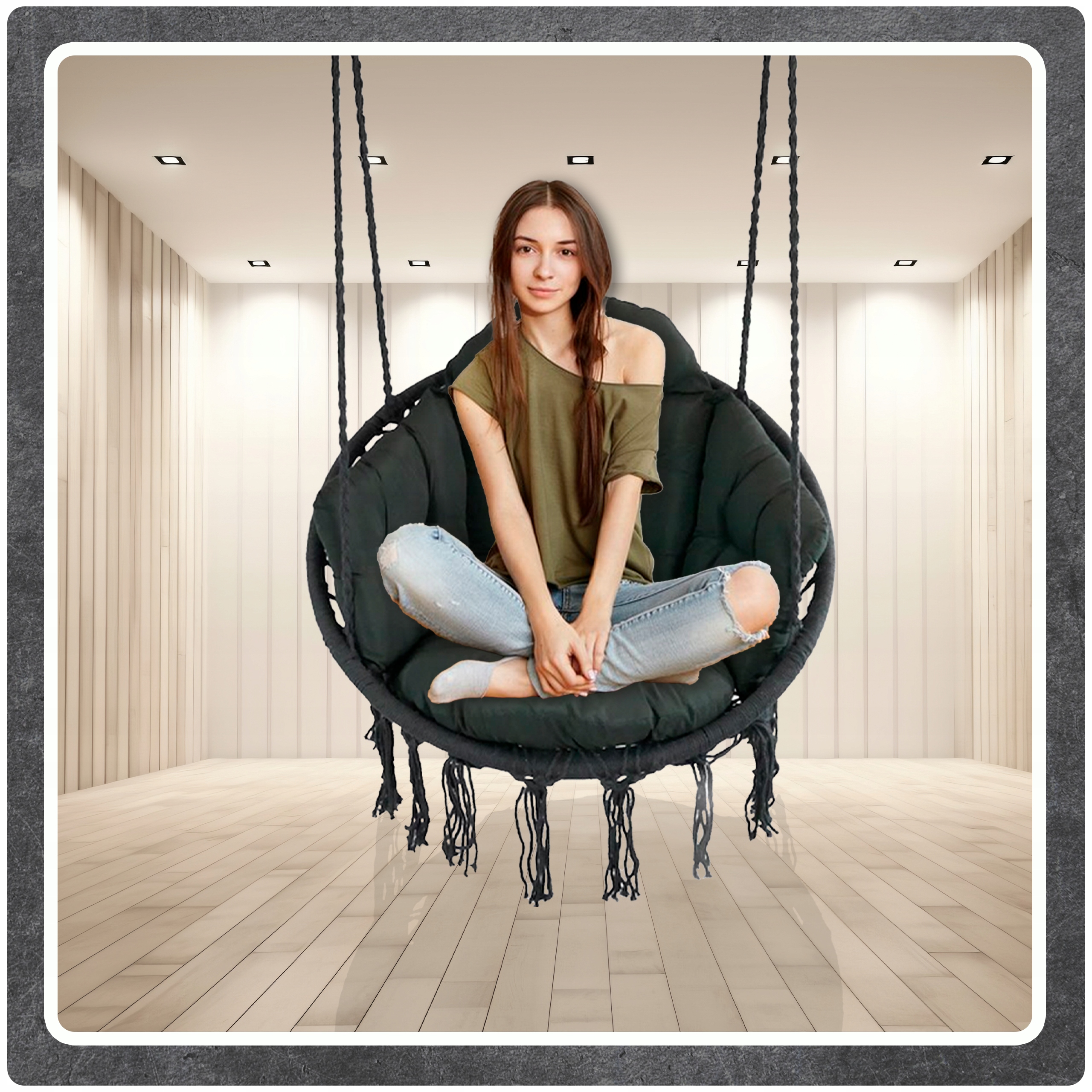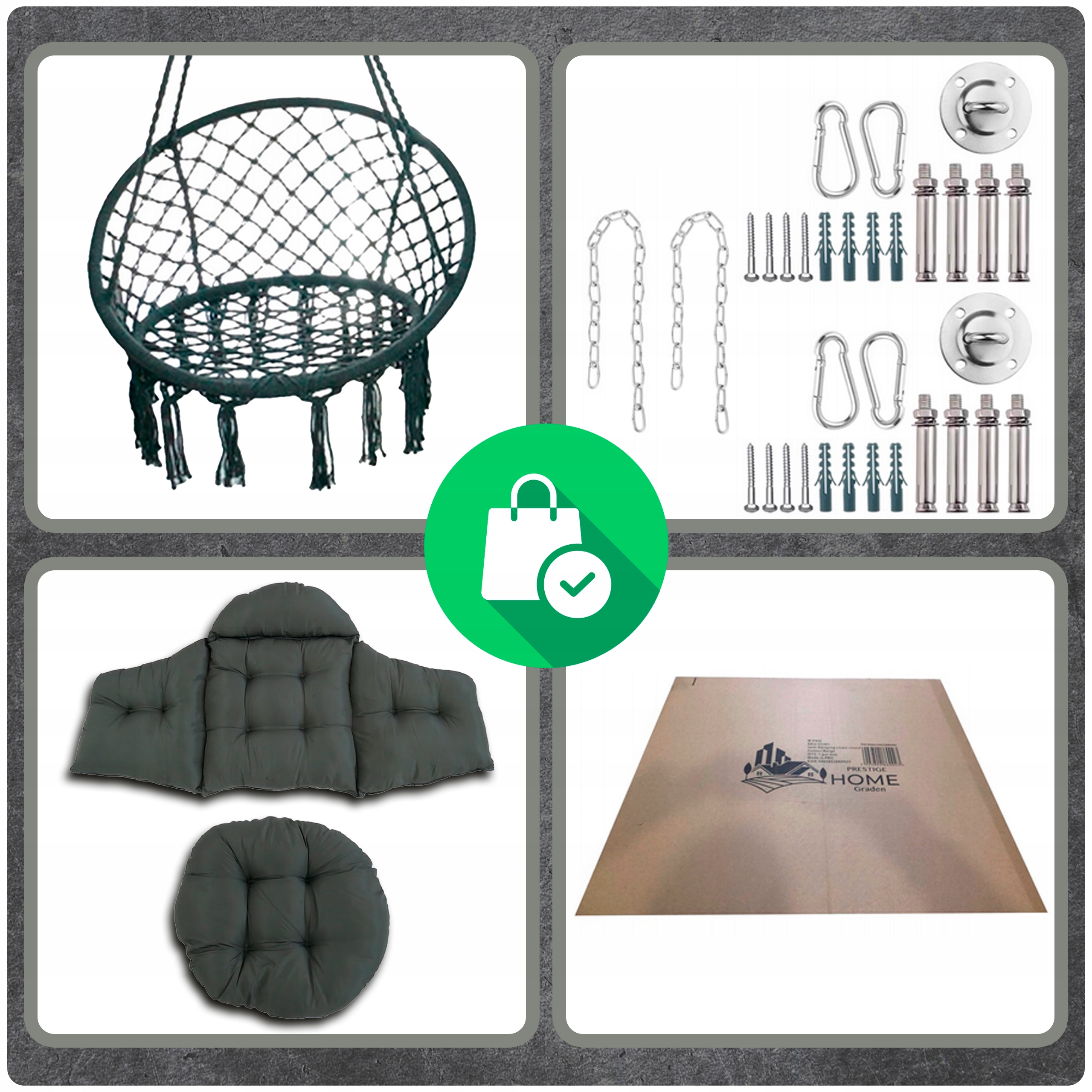 Ciemno Szare Bocianie gniazdo huśtawka + Poduszka XXL Zestaw Montażowy