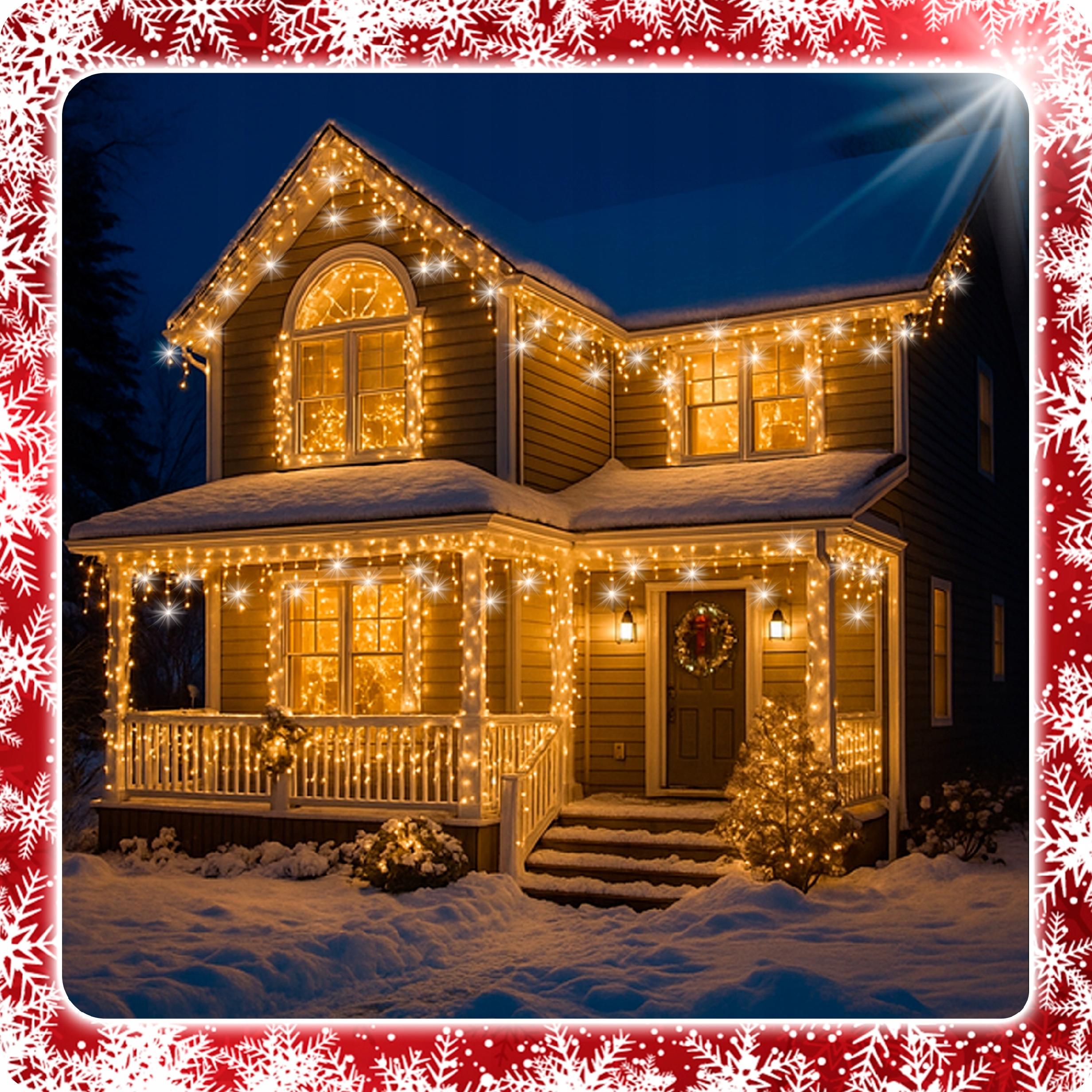 Dzięki 500 diodom LED w kształcie sopli, Twoje wnętrze lub ogród zamieni się w zimową krainę czarów. Delikatny, ciepły biały blask nada każdej przestrzeni przytulny, świąteczny nastrój.