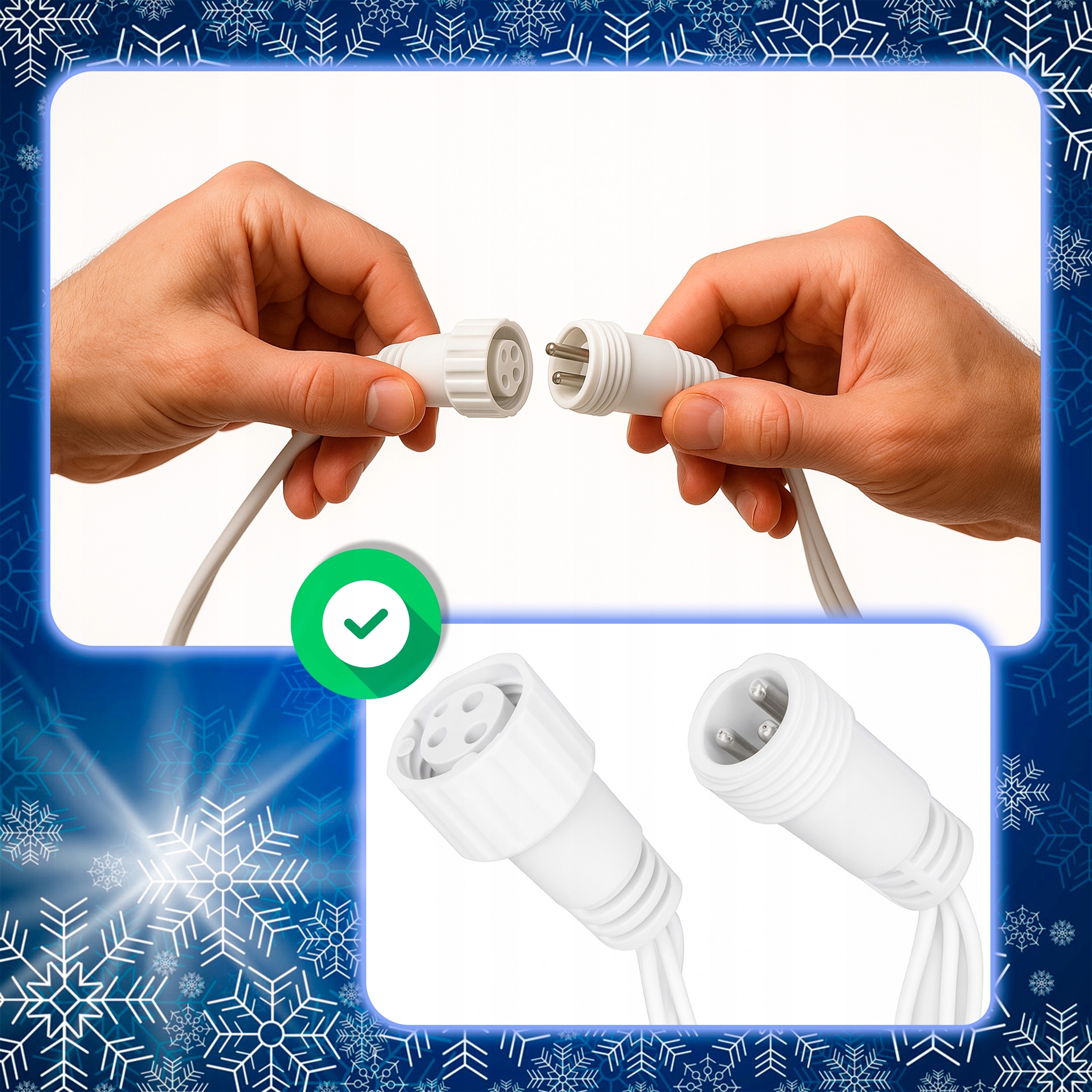 ✅Jedno zasilanie, wiele możliwości – wystarczy jedno gniazdko, aby zasilić całą dekorację. Prosty montaż – wystarczy połączyć wtyczki, bez potrzeby używania dodatkowych adapterów.