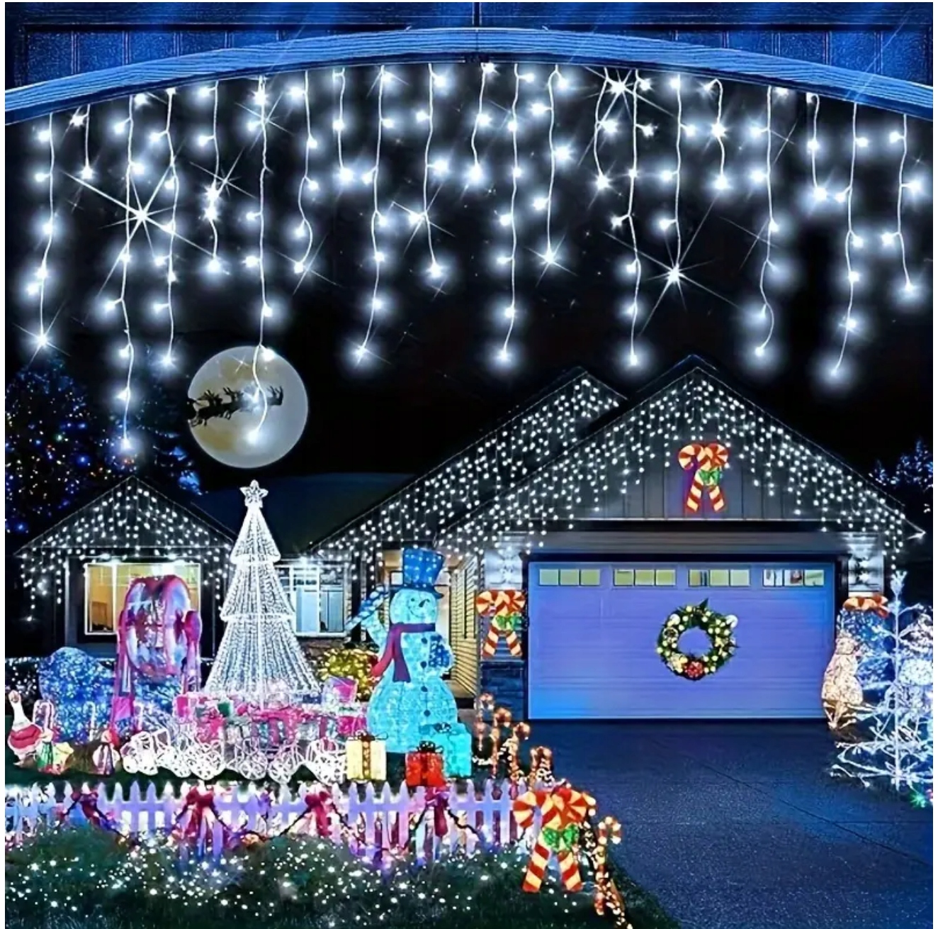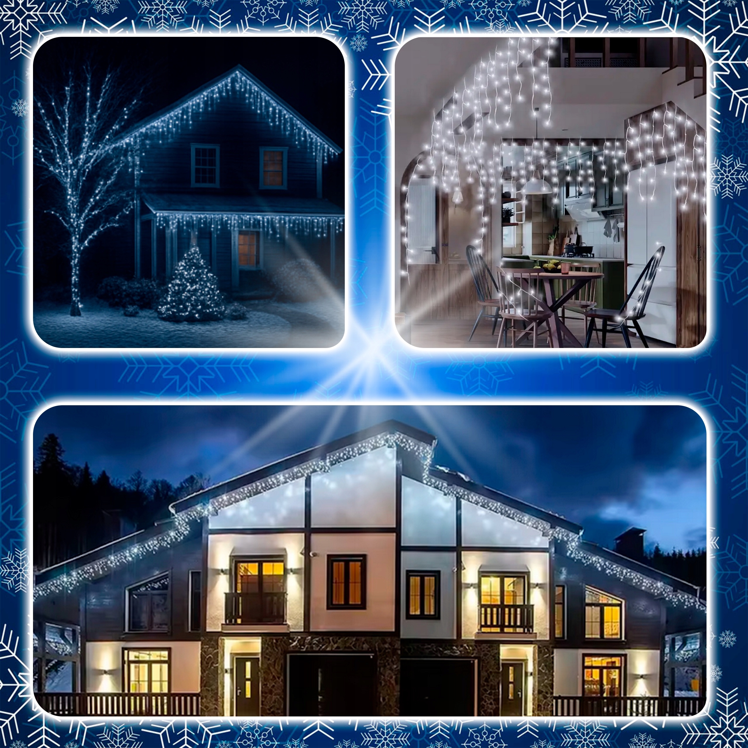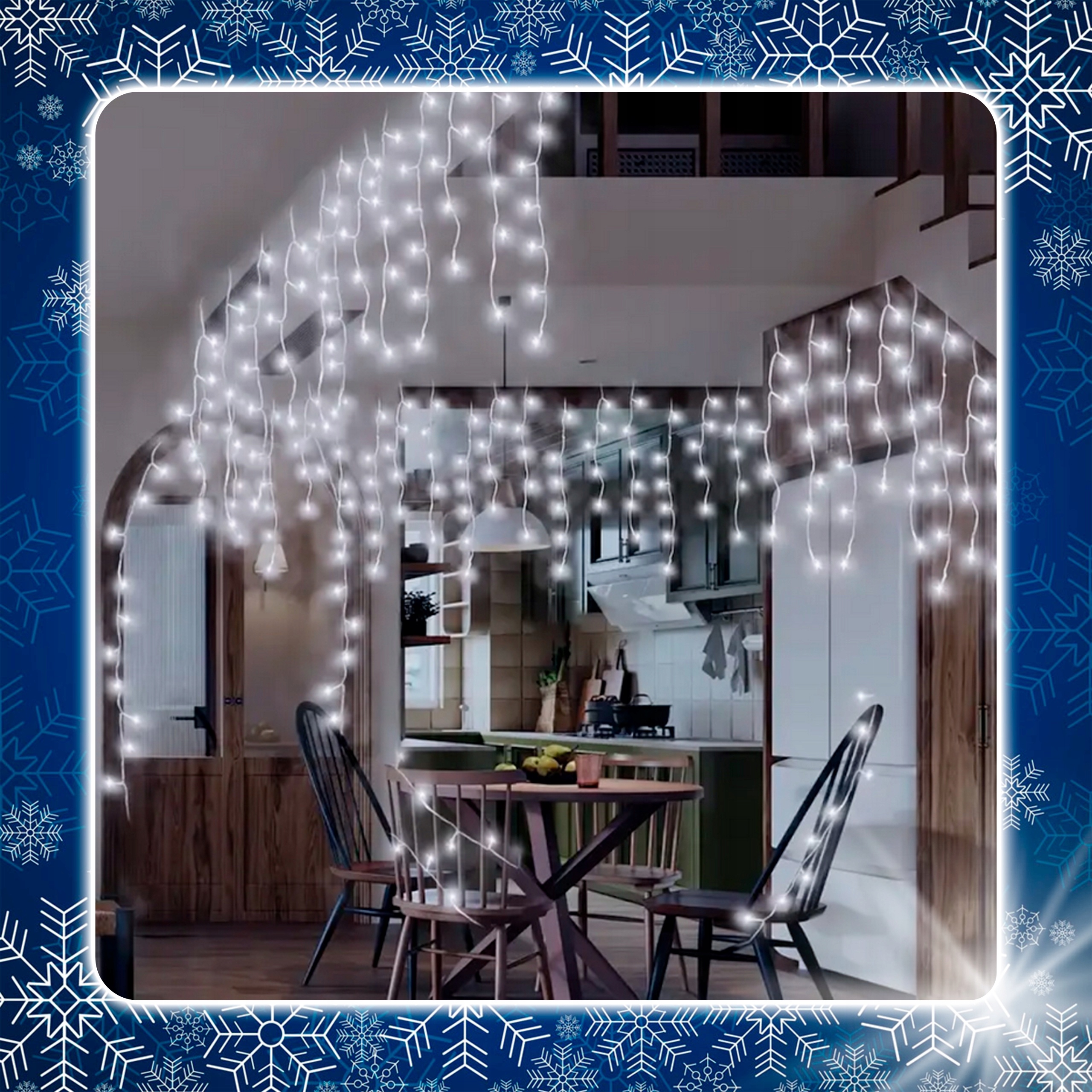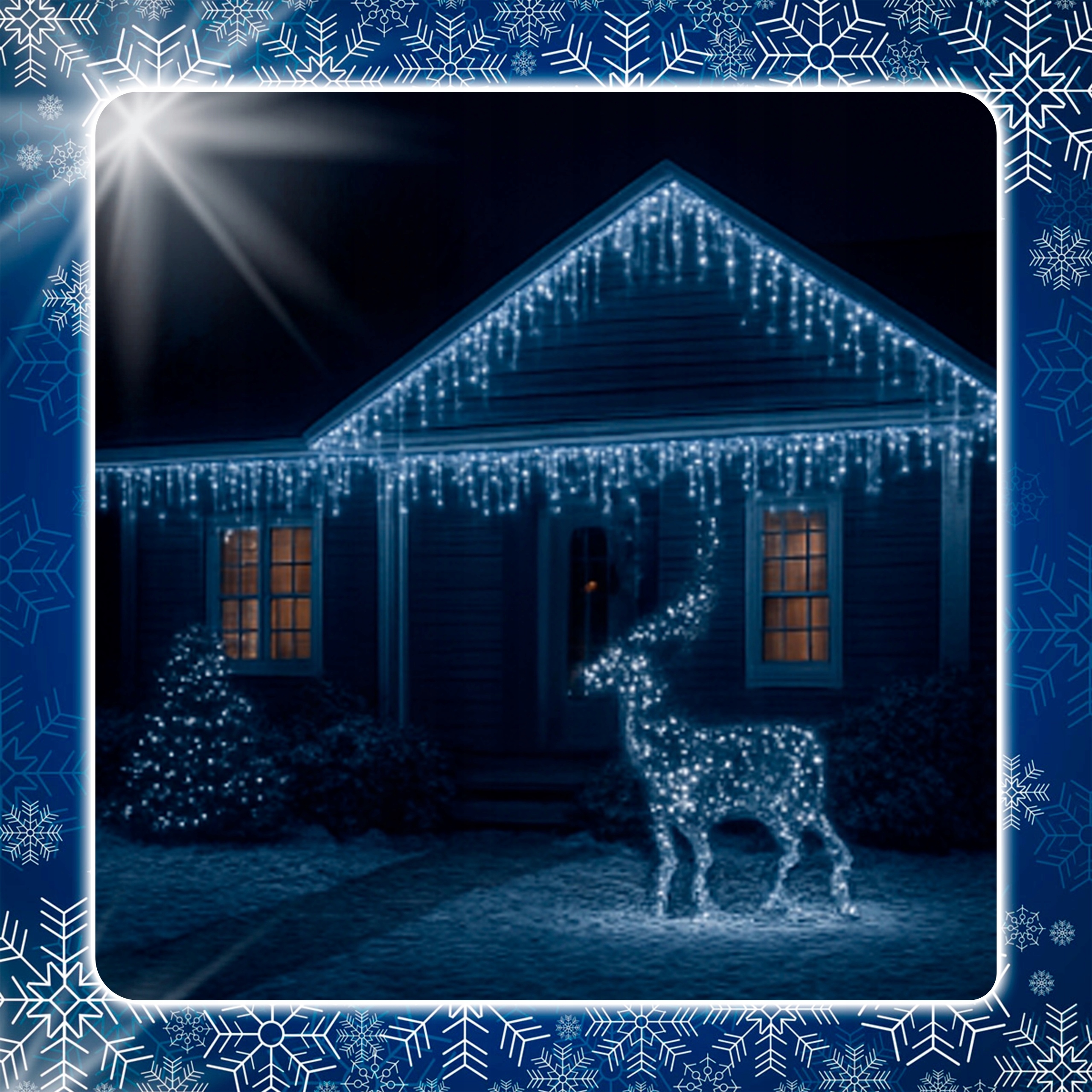 Dzięki 500 diodom LED w kształcie sopli, Twoje wnętrze lub ogród zamieni się w zimową krainę czarów. Delikatny, ciepły biały blask nada każdej przestrzeni przytulny, świąteczny nastrój.