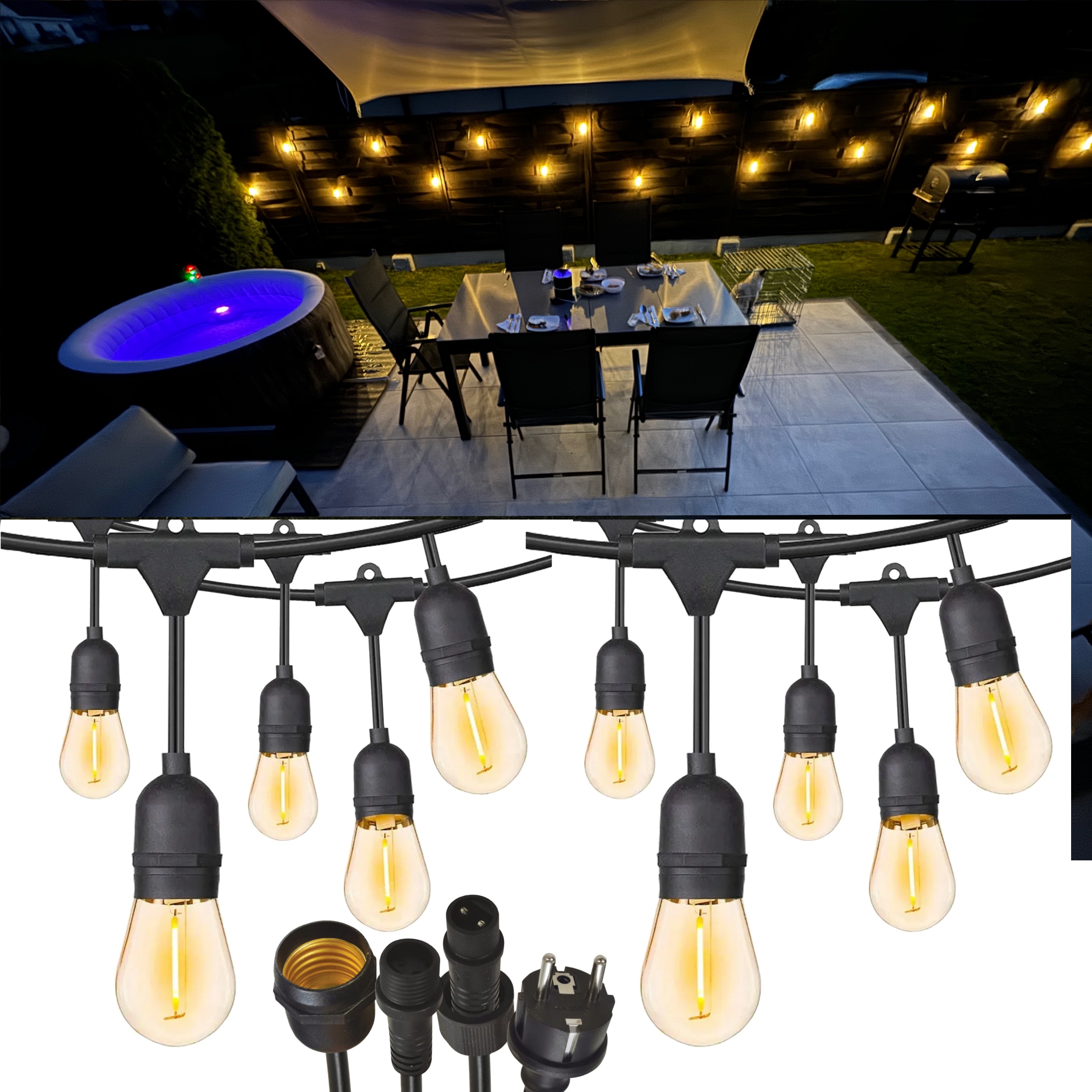 20m Girlanda Ogrodowa Świetlna 20x Żarówki LED E27 sieciowa wodoszczelna IP