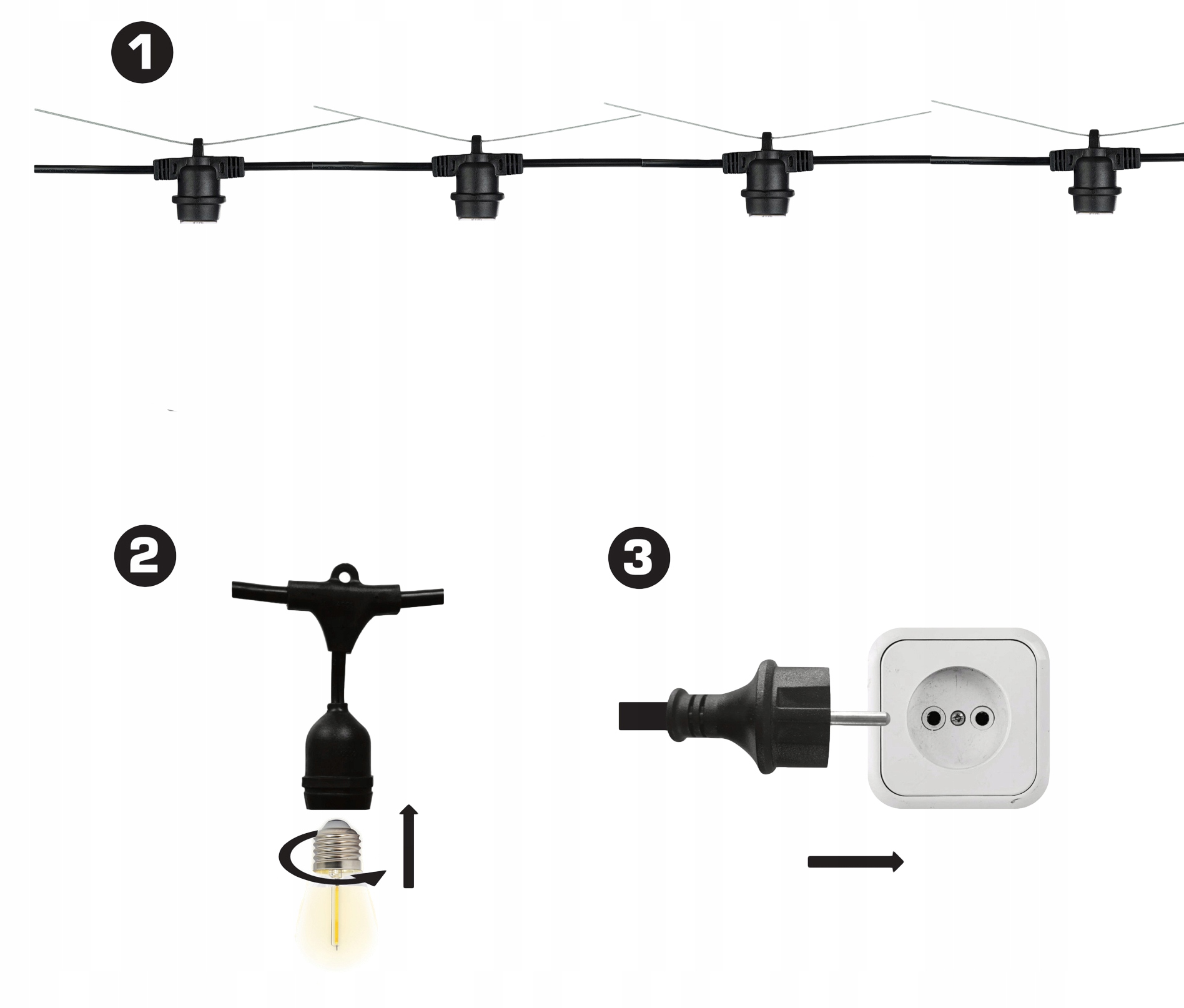 - Podłącz do zasilania - po zainstalowaniu żarówek, podłącz girlandę do źródła zasilania i ciesz się pięknym światłem.