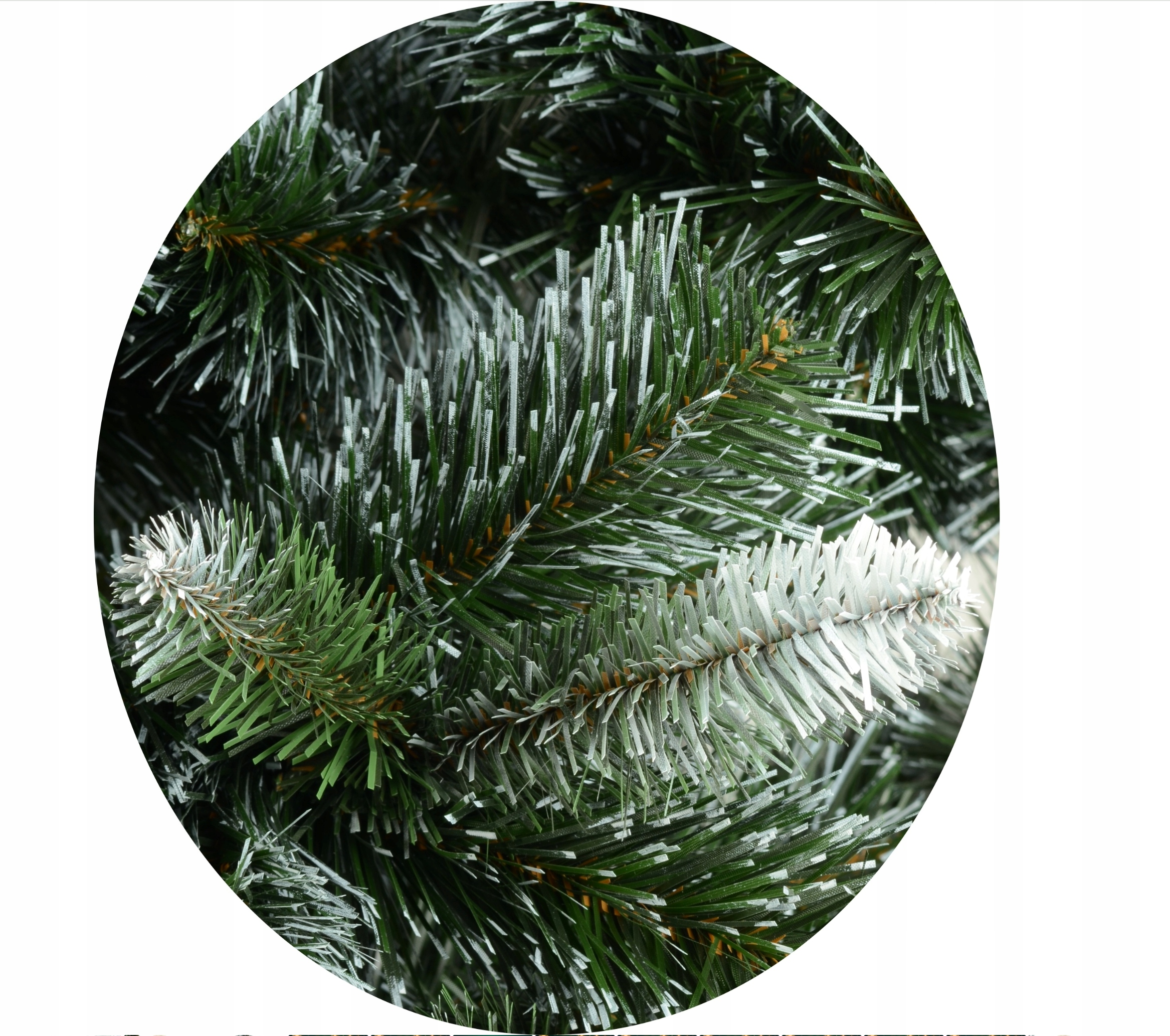 Gałązki tej choinki imitują naturalne gałęzie sosnowe, a unikalne, białe wykończenie nadaje drzewku wygląd, jakby było świeżo oprószone pierwszym zimowym śniegiem. Delikatnie malowane na biało końcówki subtelnie kontrastują z głęboką zielenią igieł, tworząc wyjątkowy efekt wizualny, który sprawi, że Twoja choinka będzie wyglądać olśniewająco w każdym pomieszczeniu.