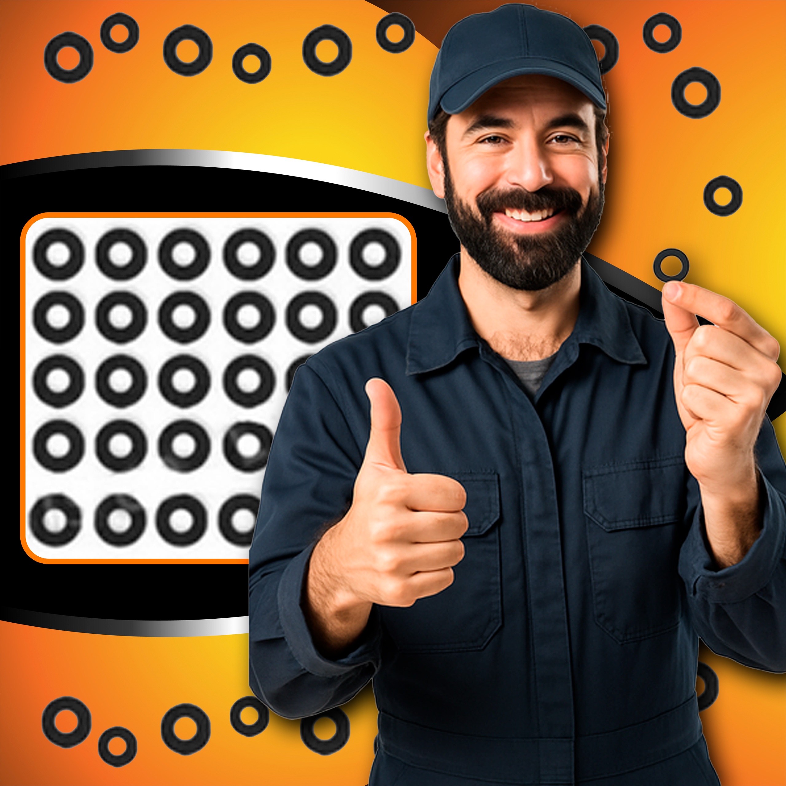 W komplecie znajduje się 30 podkładek z gąbki, które ułatwiają montaż, wymianę lub renowację spinek i kołków. Podkładki te redukują drgania, chronią powierzchnię przed zarysowaniem oraz zapewniają lepsze dopasowanie elementów montażowych.