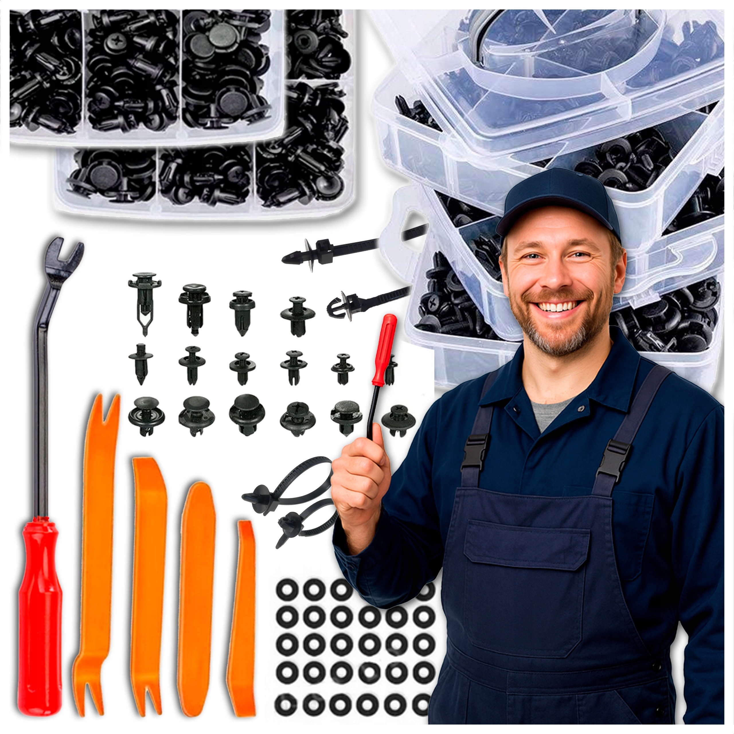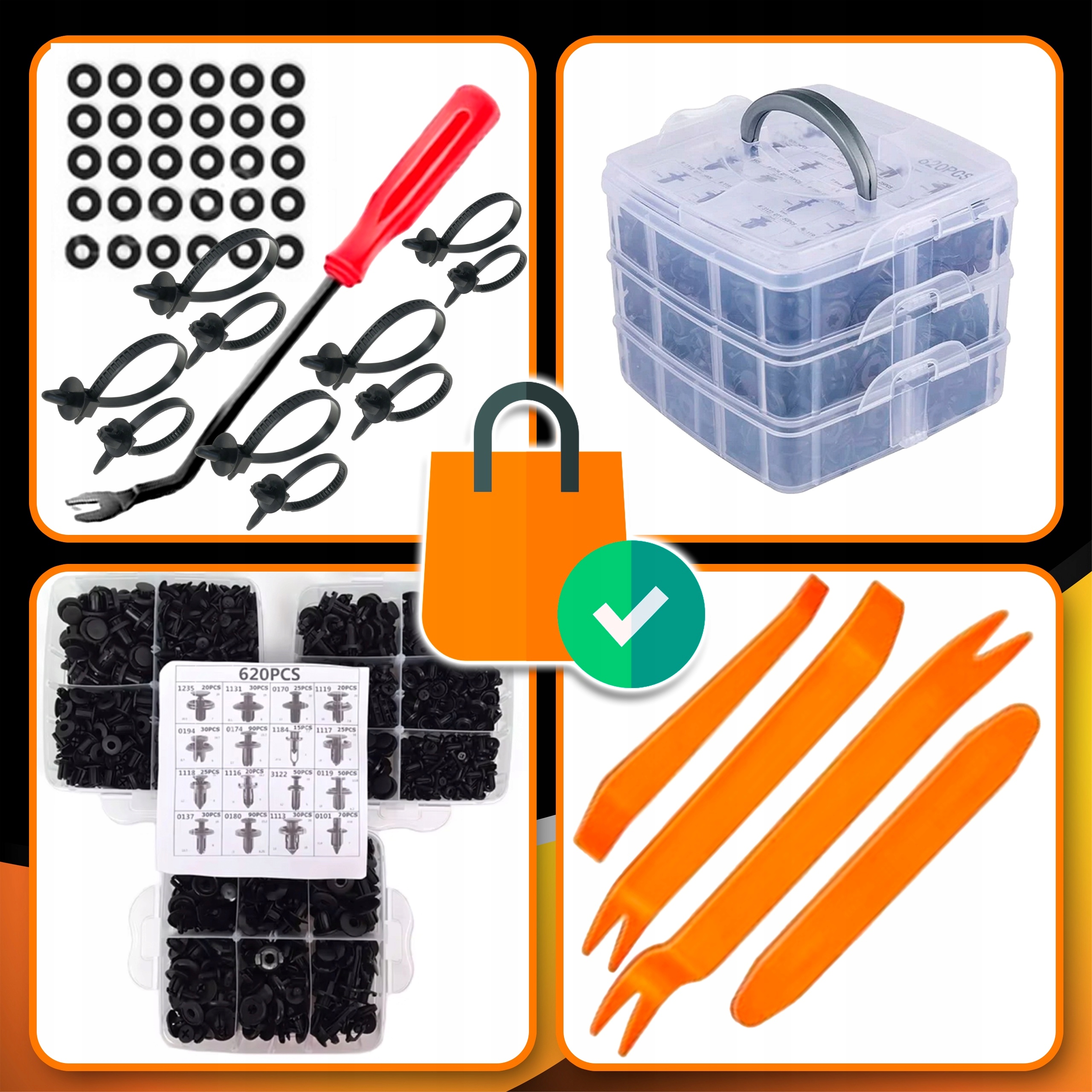 Spinki klipsy kołki samochodowe zestaw + ściągacze opaski podkładki 665 el.