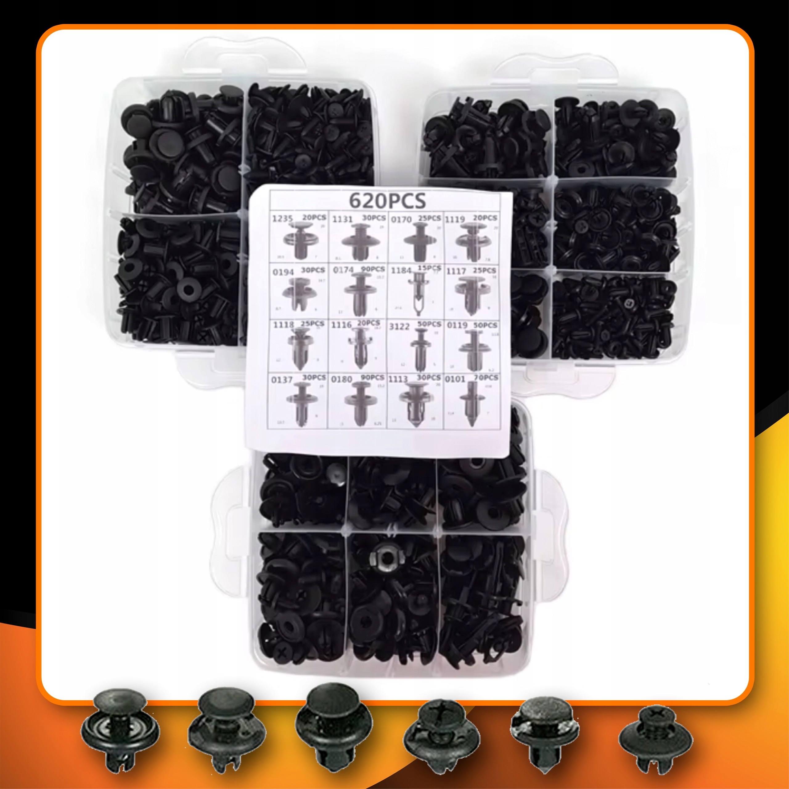 - 620 szt. spinek i kołków samochodowych (16 najczęściej stosowanych rozmiarów)