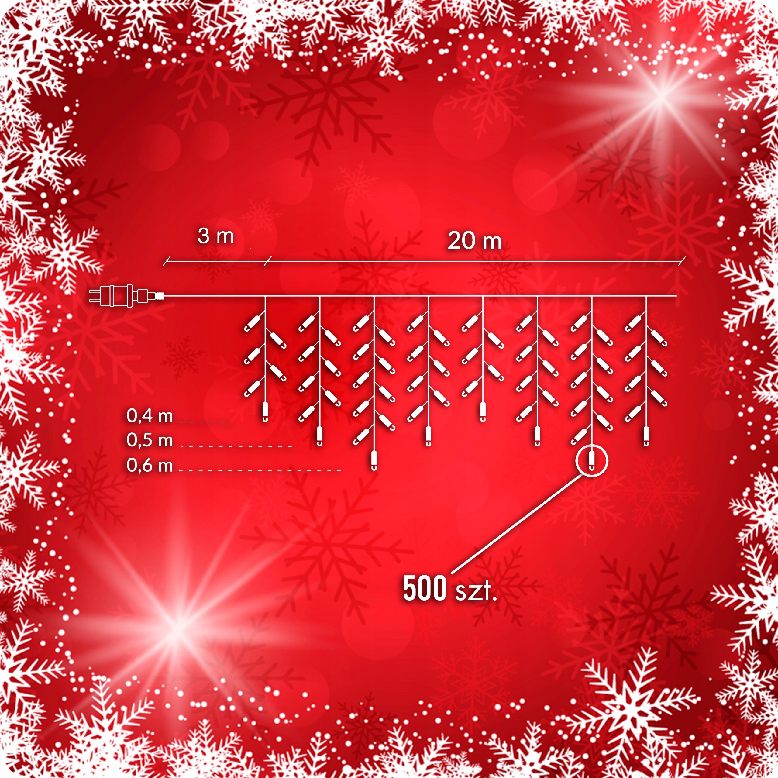 KURTYNA ŚWIETLNA SOPLE 500 LED LAMPKI IP44 BIAŁE