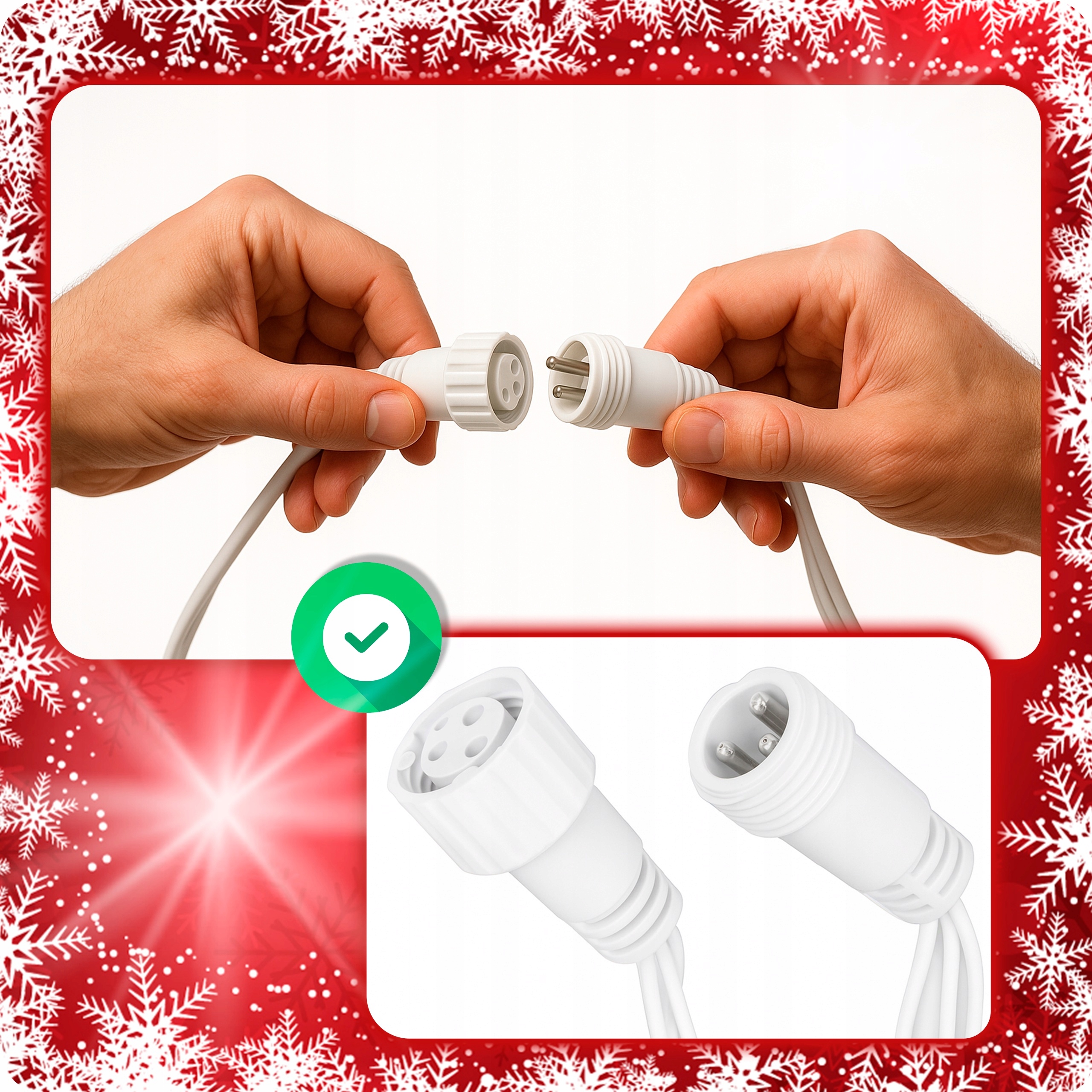 ✅Jedno zasilanie, wiele możliwości – wystarczy jedno gniazdko, aby zasilić całą dekorację. Prosty montaż – wystarczy połączyć wtyczki, bez potrzeby używania dodatkowych adapterów.