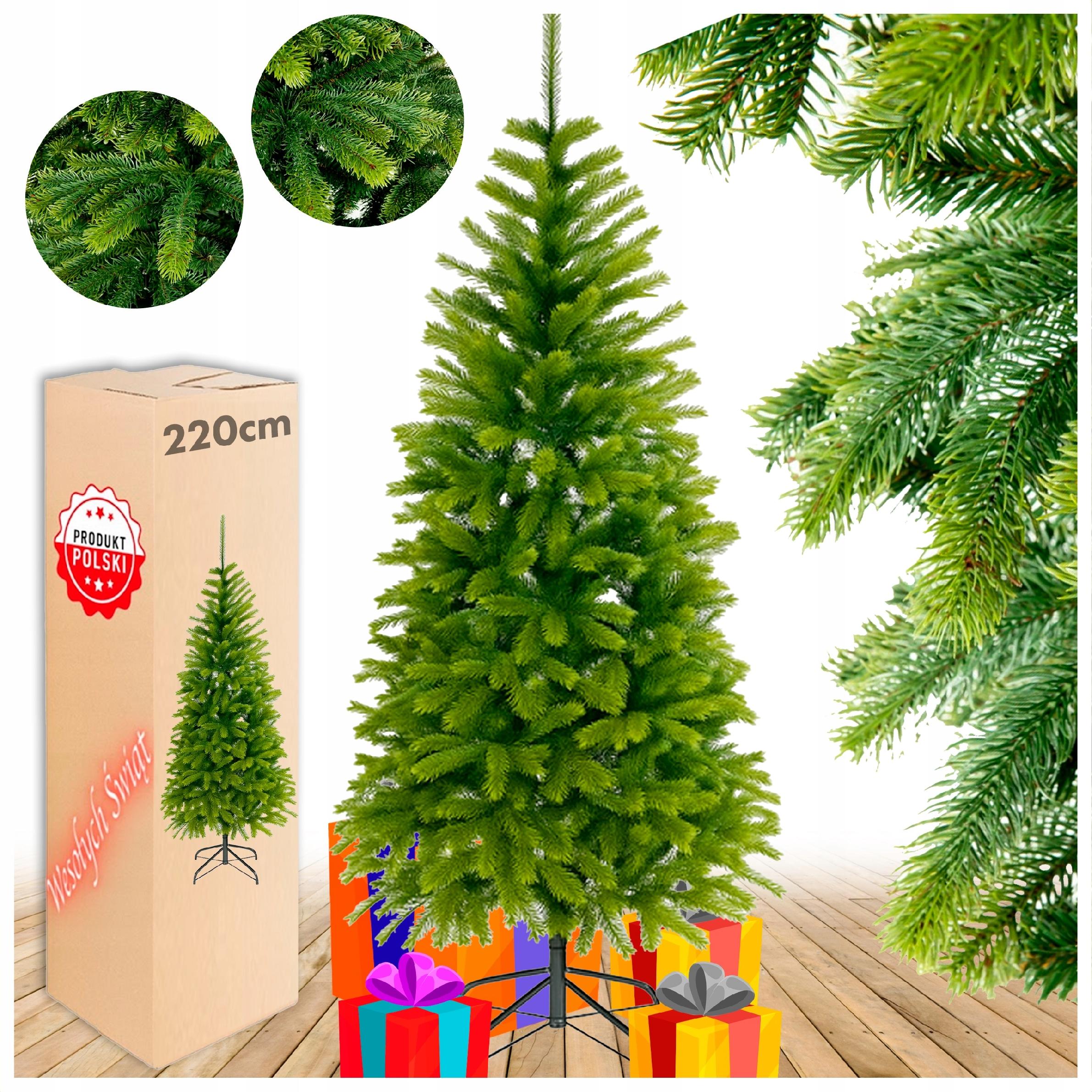 CHOINKA SZTUCZNA WĄSKA ŚWIERK PE SLIM Z GAŁĄZKAMI 220 CM JAK ŻYWY